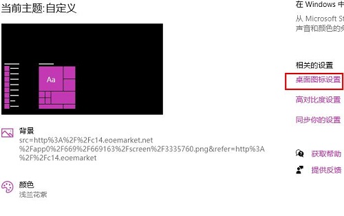 4、然后再设置窗口中选择“主题”,点击“桌面图标设置”。