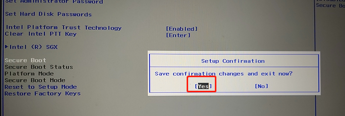 2、进入BIOS后,在Security选项卡中Secure Boot从Enabled更改为Disabled,按F10或FN+F10,选择Yes,保存退出。