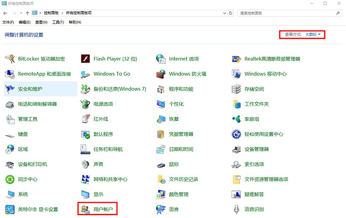 2、接着在界面中找到【用户账户】选项,并双击进入