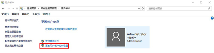 3、然后在【用户账户】界面中找到【更改用户账户控制设置】并点击