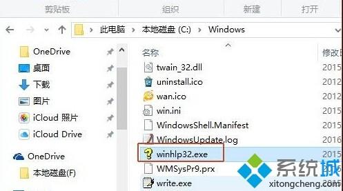 2、主要是win10将帮助都升级成云存储,所以以后的帮助文件,都可能是在网页上打开,并且屏蔽了Winhlp应用程序。可以通过win10之前的系统上,拷贝一个叫winhlp32.exe的程序(winhlp32可自行搜索下载)。