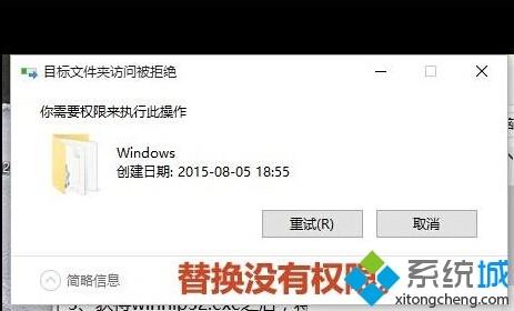 4、但是你会发现,你在替换文件的时候,你是没有权限这样的操作的。