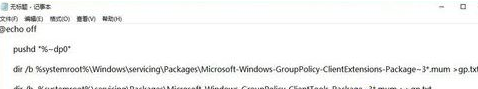 注意:使用dir命令遍历系统盘servicing目录,查找组策略的配置包,写入gp.txt。然后执行dism命令安装组策略包。