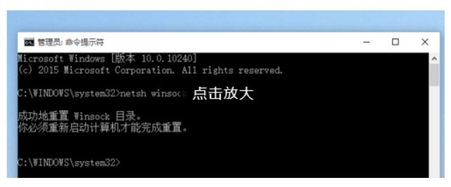 5、如果重启后没有发生数据连接标志,那么在左下角的输入框中键入CMD,选择管理员状态进行操作,随后键入【netshwinsockreset】,重置网络后确定。