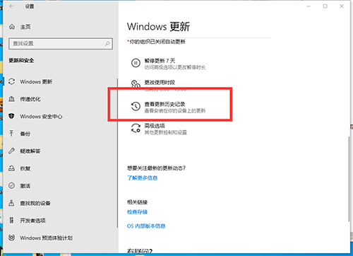 3、然后在【windows更新】的右侧界面中点击【查看更新历史记录】