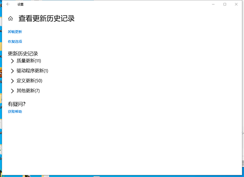 4、最后就可以在界面看到有【质量更新】、【驱动程序更新】、【定义更新】和【其它更新】的选项,选择需要查找的更新类型展开下拉框即可查看历史更新补丁