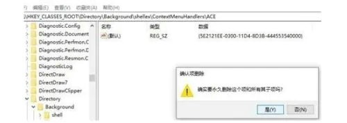 4、在ContextMenuHandlers选项下右键单击“ACE”,选择“删除”;