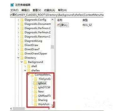 3、打开注册表编辑器,复制HKEY_CLASSES_ROOTDirectoryBackgroundshellexContextMenuHandlers并回车,并按Enter键。如果找不到复制路径,可以根据路径从左侧依次打开;