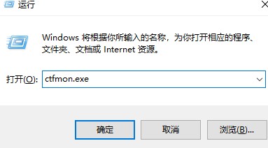 6、输入“ctfmon.exe”,按“Enter”打开输入法。