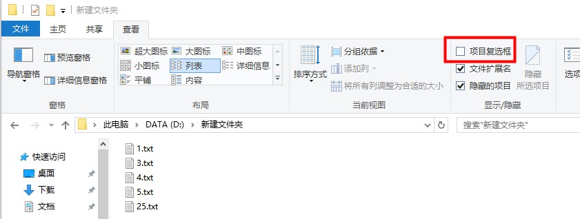 4、然后在查看选项下方的菜单中找到【项目复选框】,并将前面的框勾选