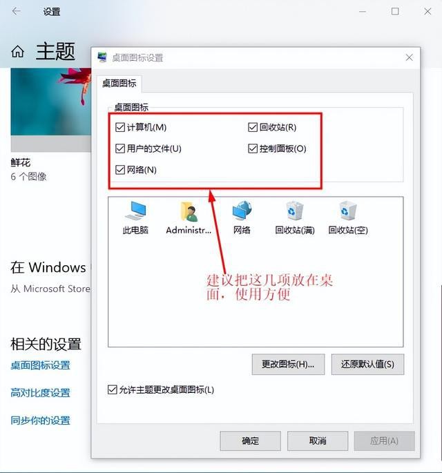 一、设置→个性化→主题→桌面图标设置→桌面图标→把常用图标放在桌面。