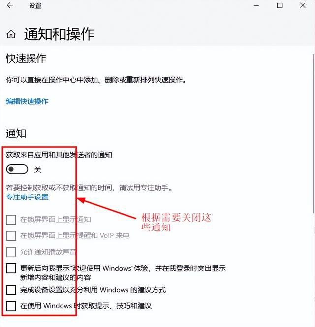八、关闭相应的通知(设置→系统→通知和操作)