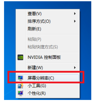 1、右键单击桌面空白处,选择屏幕分辨率。