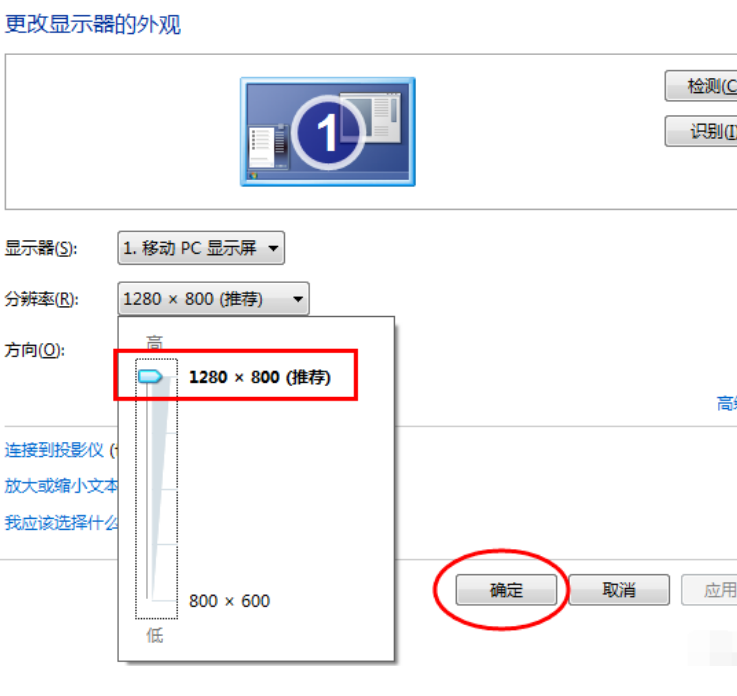 2、将分辨率更改为推荐。