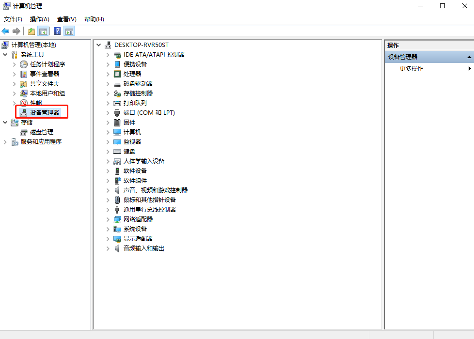 1、鼠标右键点击win10系统中的计算机图标,随后打开计算机管理界面。直接选择“设备管理器”进入,如图所示: