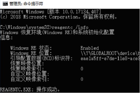 2、然后在新界面的命令提示符处输入该命令“reagentc /info” 并按“回车键”,就会显示下面的信息;