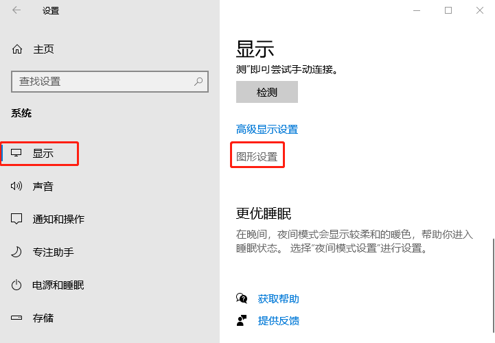 2、接着在系统的显示选项卡右侧界面中找到【图形设置】并点击进入