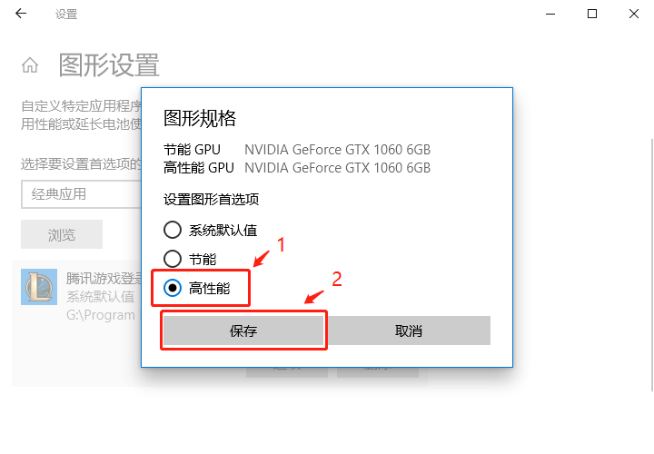4、最后在显示的窗口中选择【高性能】,再点击【保存】即可