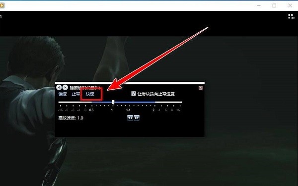 4、在“播放速度设置”窗口,点击“快速”按钮,或向右拖动滑块,可以加速播放视频。最大速度是16倍。
