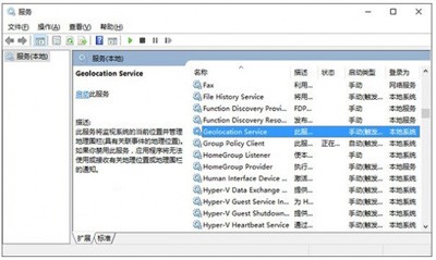 4、回到服务窗口中,选中Geolocation Service服务,点击左侧的“启动”,启动该服务;