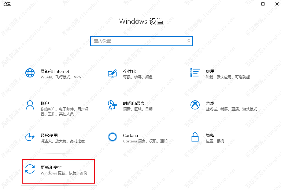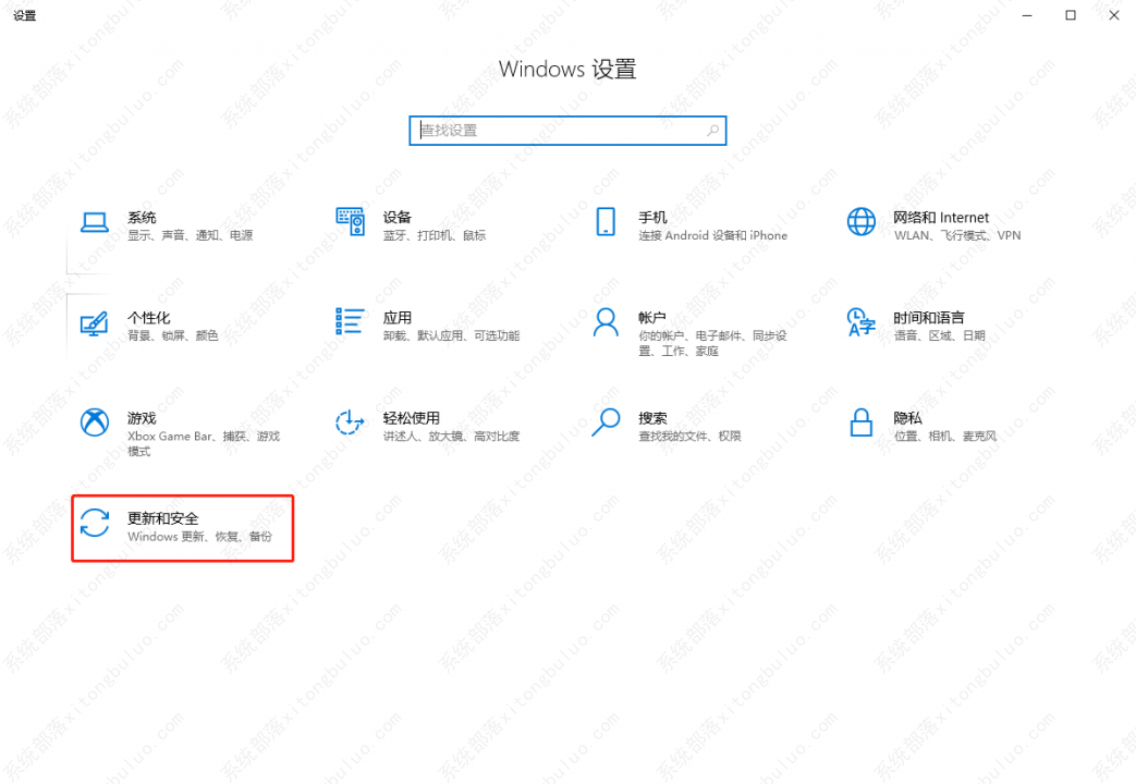 步骤1:在【开始】中打开【设置】,然后点击【更新和安全】。
