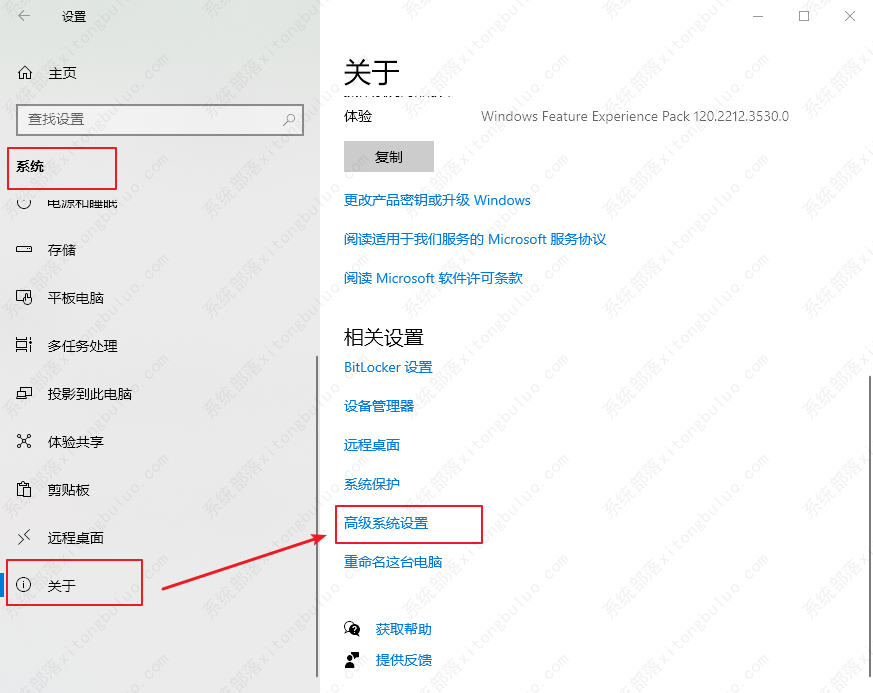 步骤1:运行计算机,同时按下键盘里的【Windows+I】键以打开设置界面。之后点击进入到【系统】选项中,点击【关于】>【高级系统设置】。