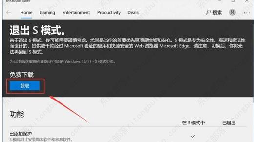 3、在应用商店中下载安装正常版系统,就可以退出win 10s模式切换回正常版了。