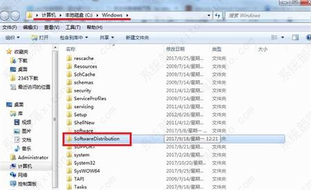 3、将“Windows Update”服务停止后先不要关闭窗口,打开计算机进入“C:\Windows”目录下,把“SoftwareDistribution”文件夹删除。