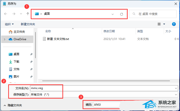 2)文件名填入以【.reg】结尾的名称,保存类型选择【所有文件】