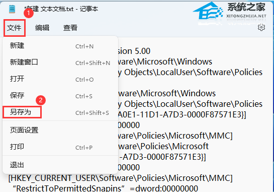 2. 新建 文本文档窗口,输入以下内容: