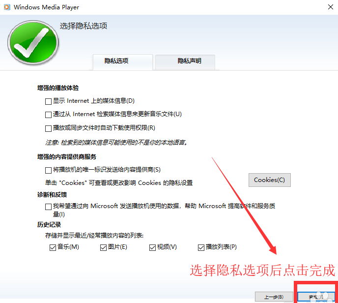 3、首次打开Windows Media Player需要进行初始设置,选择【推荐设置】或【自定义设置】,然后下一步。