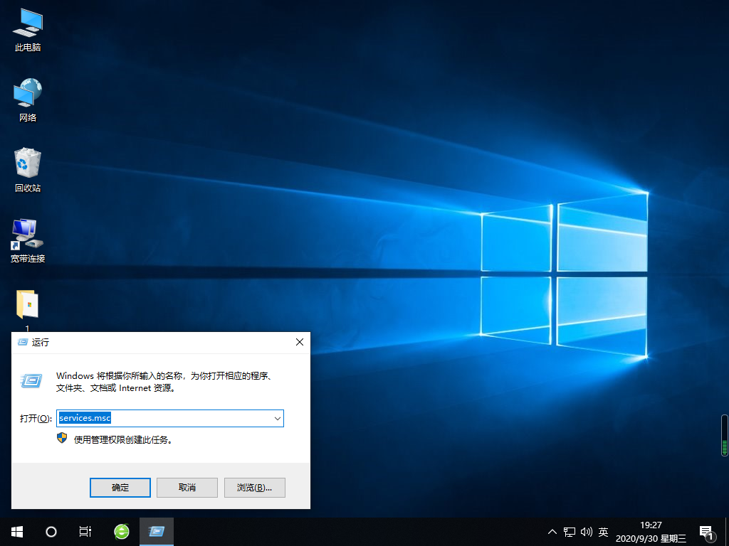 1、首先我们利用win+R弹开运行页面,输入命令:services.msc,点击确认。