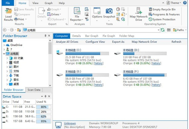 FolderSizes提供预约的,交互式磁盘空间分析体验,你必须亲自体会一下。 不仅仅是许多外观很好的报告,FolderSizes允许你可视化观察磁盘空间使用情况。