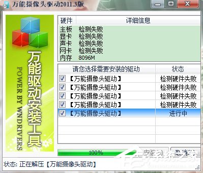 3、万能摄像头驱动软件正在安装中,您需要耐心等待软件安装完成就可以了。