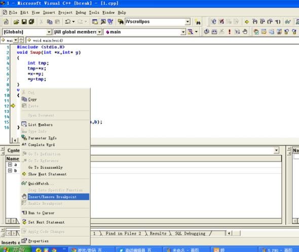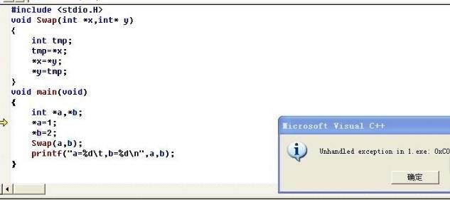 4、观察程序在运行的时候是否会出现内存溢出的情况,或者查看变量值的变化是否符合要求范围。最终在*a=1处发现了错误,经过改正后再次运行程序。