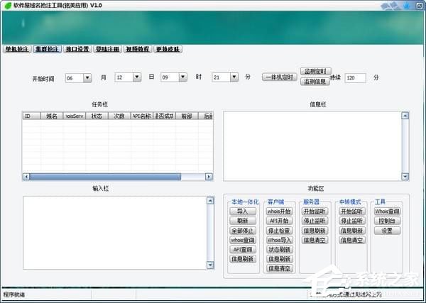 “多任务按钮”:当域名需要注册的域名多于2个的时候,按照指定格式导入参数,这种情况下,任务1和任务2两个通道不启用。