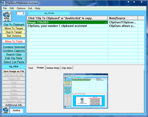 ClipGuru是一款可以保持被拷贝到剪贴板上所有数据的跟踪并且允许你根据需要重新调用或者保存数据的简单的剪贴板管理器。