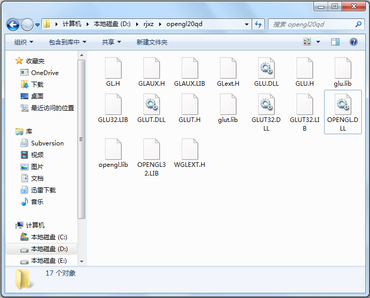 3、把解压得到的glut.lib和glut32.lib放到静态函数库所在文件夹(即与include并排的lib文件夹下)。