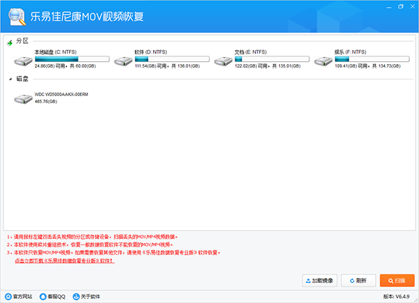 乐易佳尼康MOV视频恢复具备了简单直观的操作界面,简单几步即可完成整个扫描与恢复过程。