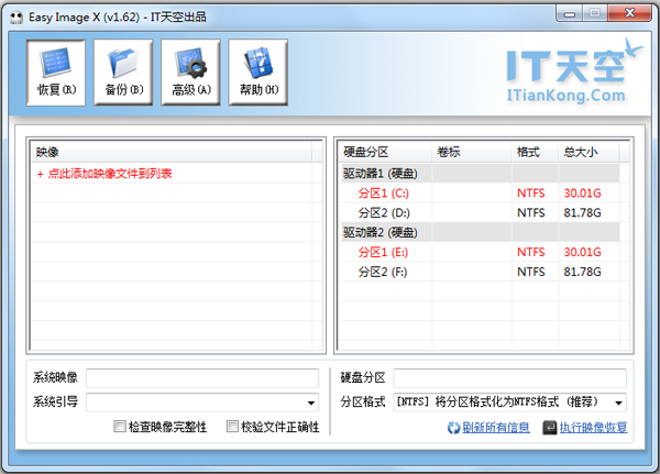 Easy Image X是一款将传统的Ghost和流行的ImageX合二为一,再配以清晰明了的图形界面的系统映像管理工具,同时支持Ghost和ImageX。