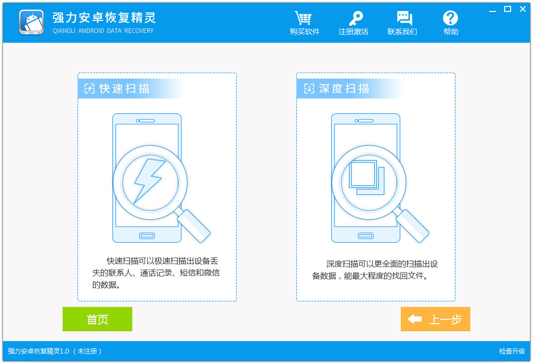极速恢复短信、联系人、图片、聊天软件等各类安卓数据。