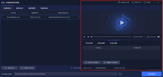 迅捷音频转换器为广大用户提供了非常便捷的音频剪切功能,包括了平均分割、时间分割、手动分割等,我们可以对音频进行合理的剪切,选择自己需要的音频片段。