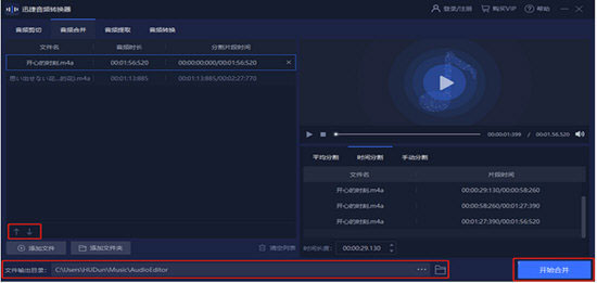 3、选择完成之后,我们点击“开始合并”即可实现音频文件的合并了。