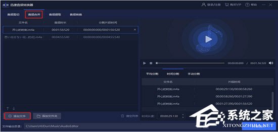 2、添加音频文件之后,我们就可以在界面右方找到一个编辑框,在编辑框中,我们即可实现音频文件的剪切;