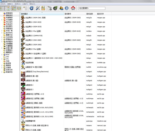 1、双击mamepgui.exe图标启动模拟器,就会出现游戏列表,点到(拥有街机)选项后,按F5可以刷新游戏列表。