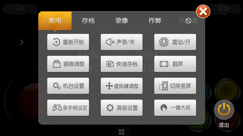 该菜单为模拟器的常用设置菜单,可以对模拟器进行各种调整。例如游戏音乐的开关,游戏加速,震动开关,快速存档等等。