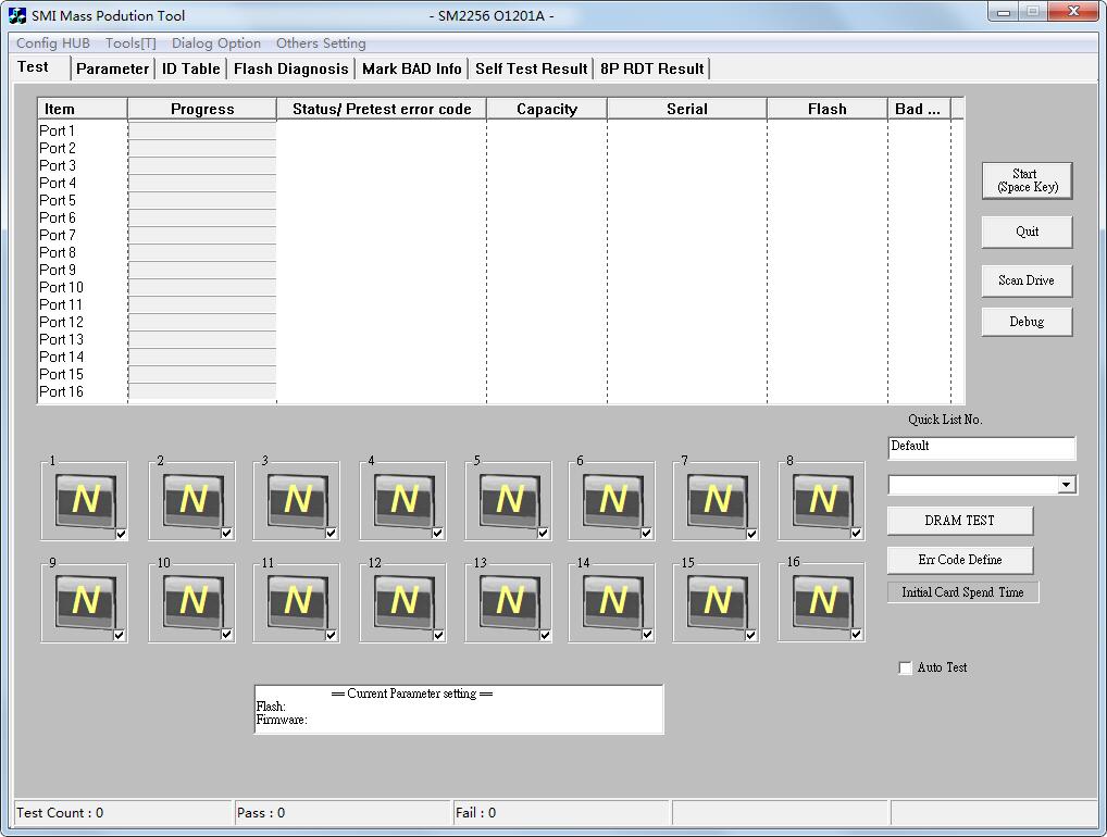 开卡设定密码两个空格。设定的位置是点击Parameter,然后点edit config按钮输入密码就可设置参数了,注意要根据你的ssd实际闪存情况来设置,如果主控不是SM2256请不要使用本开卡工具。
