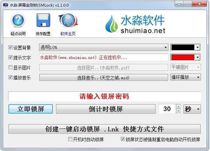 水淼屏幕金刚锁是一款水淼软件出品的免费挂机锁程序,它能带给您金刚品质的屏幕锁定服务。锁屏可充分保证您在离开电脑后别人无法操作您的电脑。