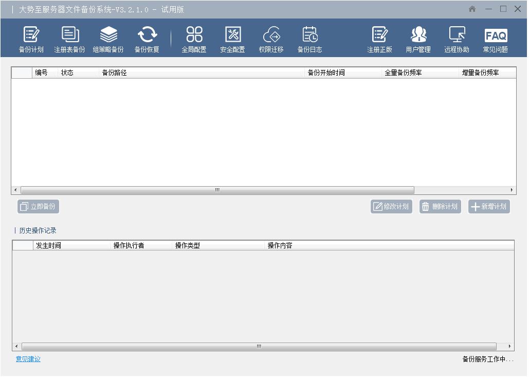 大势至服务器文件备份系统是一款非常专业的服务器文件备份服务器文件工具,它可以将服务器文件实时、自动、全面备份到其他分区、其他磁盘、其他服务器或NAS存储空间甚至云盘等,并可以实现“全量备份”和“增量备份”,同时还可以备份注册表、组策略、操作系统还原、服务器权限迁移等,该版本破解序列号和加密狗,功能无限制,用户可永久免费使用。