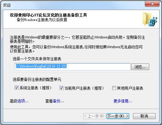 3、设置备份目录(默认目录为C:WindowsRegBak)。